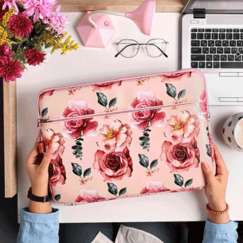حافظة لاب توب من القماش 15.6 بوصة – زهور وردي 850