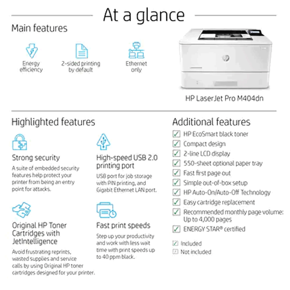 تتميز طابعة اتش بي Pro M404DN بأداء متميز وموثوقية عالية، مما يجعلها خيارًا مثاليًا للاستخدام في البيئات المكتبية والمؤسساتية. توفر هذه الطابعة سرعة عالية في الطباعة، مع دقة مذهلة، وذاكرة كبيرة لمعالجة الطباعة بكفاءة. بالإضافة إلى ذلك، فإنها تأتي مع مجموعة من وسائل الاتصال والتواصل لتلبية احتياجات العمل الحديثة.